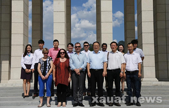 7月13日下午,南澳大学代表团一行在副校长王树声教授的陪同下参观了我校草堂校区。代表团一行重点参观了安德学院院址,王树声教授详细介绍了安德学院教室和公共区域的装修方案及施工计划安排。Allan Evans教务长对我校草堂校区的建筑布局表示赞叹,对安德学院的发展建设充满信心。