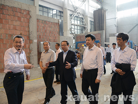 签字仪式前,庄长兴、易军等在我校党委书记高明章、校长苏三庆的陪同下参观了校史馆并考察了建筑广场、结构实验室。