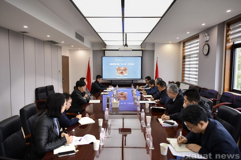 朱晓渭在听取建筑学院党委书记高魁、院长雷振东的工作汇报后,对建筑学科在“双一流”建设方面取得的成绩给予充分肯定,对学院未来的发展提出了殷切期望。他强调,要夯实引领,进一步全面加强党的领导。要深入学习贯彻习近平新时代中国特色社会主义思想,全面落实立德树人根本任务,发挥党的领导作用,发挥党员的先锋模范作用,发挥基层党组织的战斗堡垒作用,在冲刺“双一流”的道路上,把党的旗帜高高举起。要坚定信心,进一步强化使命担当。牢牢把握历史赋予学校发展的重大机遇,要以高度的政治自觉和强烈的使命担当,充分发挥“尖刀连”的作用,锚定目标,全力推进各项事业高质量发展。要筑牢基础,进一步全面弘扬优势。通过持续投入、机制创新夯实学科、人才、科研等硬实力,通过文化传承、国际合作、学科交叉融合提升软实力。实现“双一流”建设从量变到质变的飞跃。要突出重点,进一步加快补齐短板。以“钉钉子精神”持续推进“补短板”,既要解决当前痛点,更要布局长远。通过一系列切实可行的举措,为“双一流”建设提供坚实支撑。要加大宣传,进一步营造良好氛围。深入挖潜,讲好学科故事、师生故事、服务贡献故事,擦亮特色名片,不断增强建设成效的传播力、影响力。要强化保障,进一步加大支持力度。建筑学院要扛牢主体责任,学校从资源投入、政策创新、机制优化、环境营造等多维度构建系统性保障体系,支持做好服务保障。