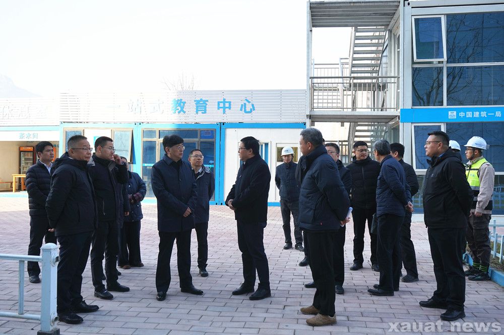 在子午书院1号学生公寓楼建设施工现场,朱晓渭听取了项目汇报,详细了解施工进展,深入楼体内部实地察看工程质量。他强调,要全力加快建设进度,科学统筹施工安排,确保项目按期交付使用;要严把质量关口,坚持高标准、严要求,打造优质精品工程;要严守安全底线,强化安全责任落实,坚决防范各类风险。他鼓励全体建设和管理人员履职尽责、踔厉奋发,为学生营造良好的住宿生活环境。