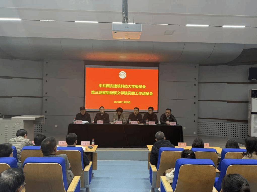 根据校党委统一部署,2025年11月10日,校党委第三巡察组巡察文学院党委工作动员会在雁塔校区粉体所一楼报告厅召开。