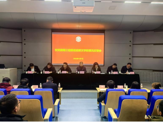 党办、校办主任、党委巡察办主任高瑞龙,校党委常委、组织部部长卜长安,校纪委副书记施昕强,党委巡察办常务副主任李家辉,第三巡察组副组长李西平及相关成员,文学院党政领导班子成员、各委员、副高及以上职称教师、系部负责人、教工党支部书记、科级及以上干部及教师代表等参加会议。